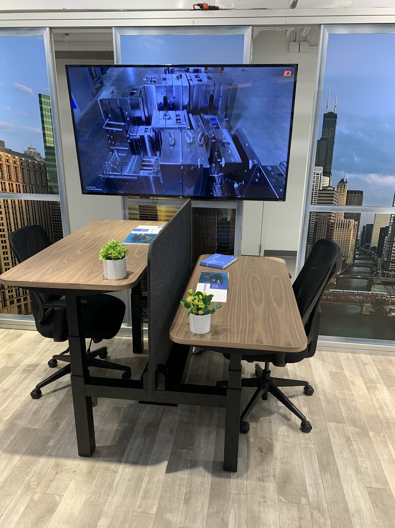 2022年美国芝加哥办公家具展于6月13日至15日在芝加哥商品市场举办,中欧(中国)股份北美销售团队携智能升降桌中欧网页版亮相展会现场。