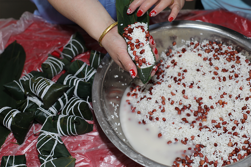 所有粽子包好后,现场工作人员帮大家把所有粽子送入厨房,即刻下锅开煮!