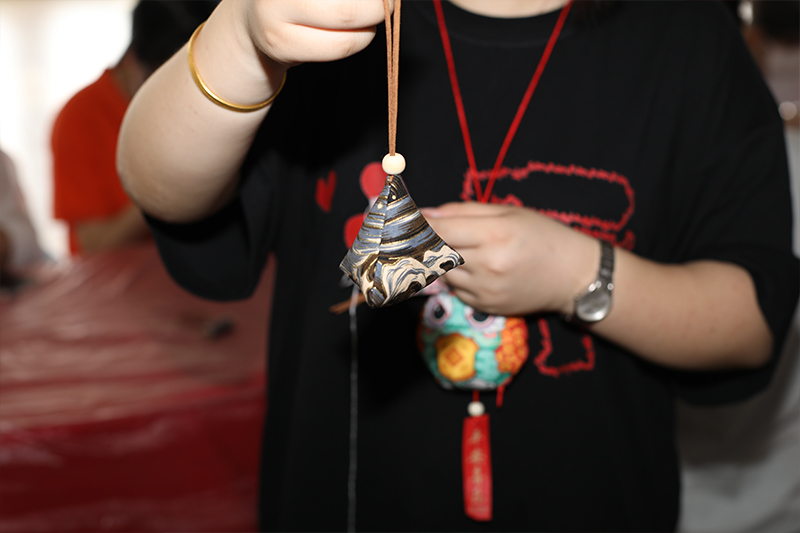 闻着淡淡的香料气味,大家不时交流技巧,或讨论和回忆着自己以前过端午的场景,互相交流着不同的风俗习惯。手作活动结束后,各位纷纷向镜头展示自己的作品,现场充满了欢快的气氛。